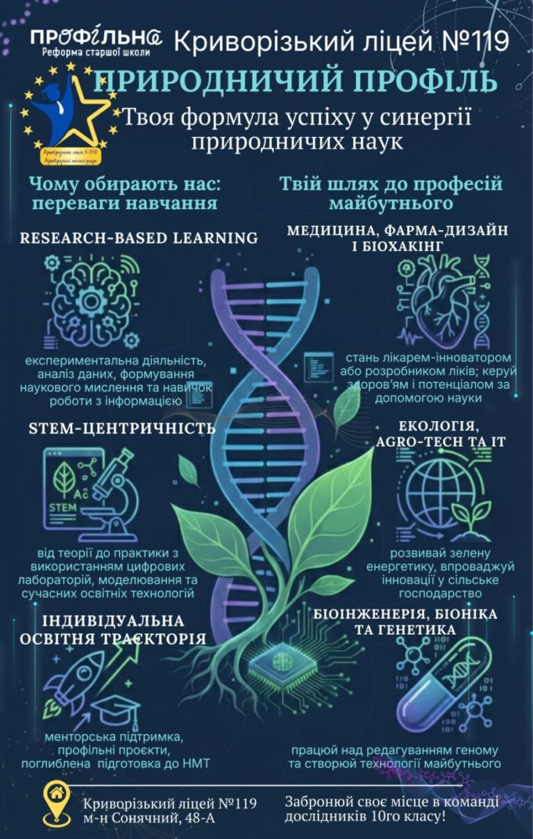Майбутні 10-класники, якщо ви хочете не просто навчатися, а створювати, досліджувати й відкривати нове — ПРИРОДНИЧИЙ ПРОФІЛЬКриворізького ліцею №119 Криворізької...