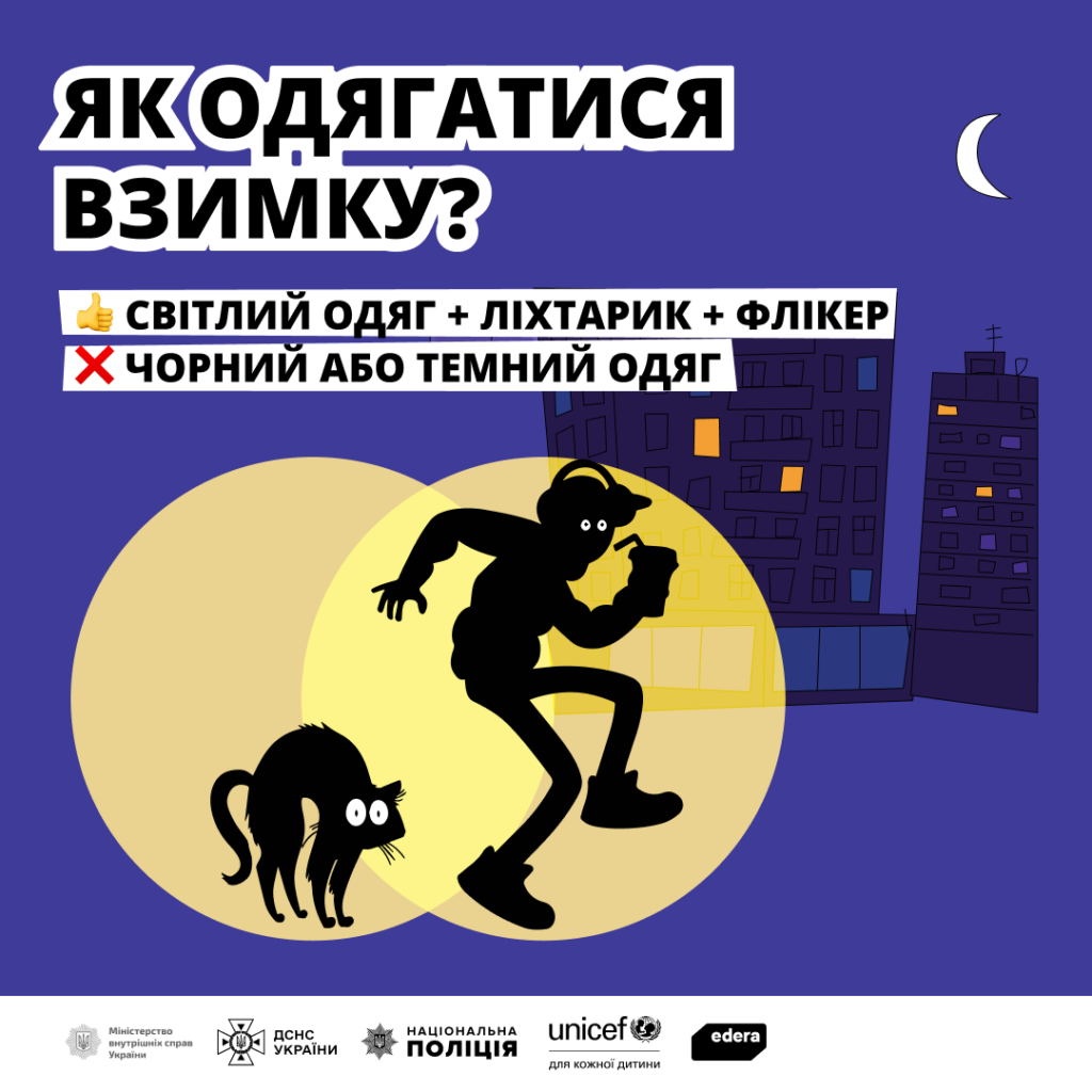 – Світловідбивачі на руках, ногах, або на сумці чи рюкзаку