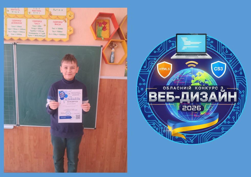 Щиро вітаємо Зорю Даніїла з почесним ІІ місцем та Дмітрієва Данила з ІІІ місцем в обласному конкурсі з WEB-дизайну
